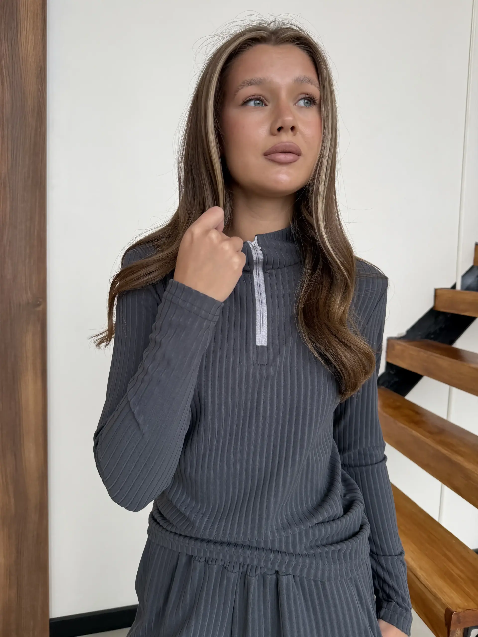 - Лонгслів має блискавку, що додає комфорту